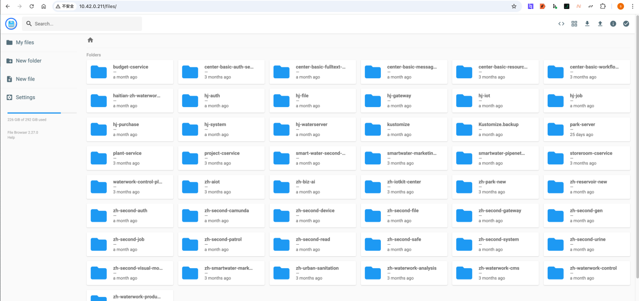 在测试和预演服务器分别有部署了一个filebrowser服务,分别为:http://filebrowser.test.zhxx.site,http://filebrowser.prev.zhxx.site/