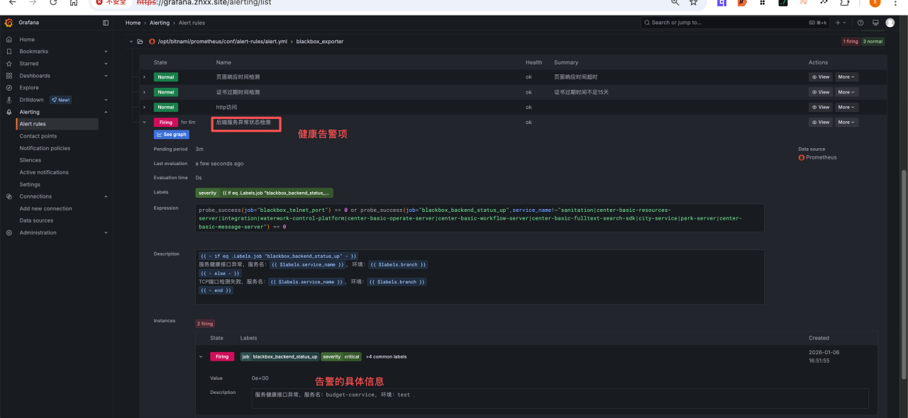 目前监控告警已经可以做到捕获环境内大部分异常,所以出现问题可以首先在 grafana 下面查看是否有异常告警,再针对性排查问题并处理。
