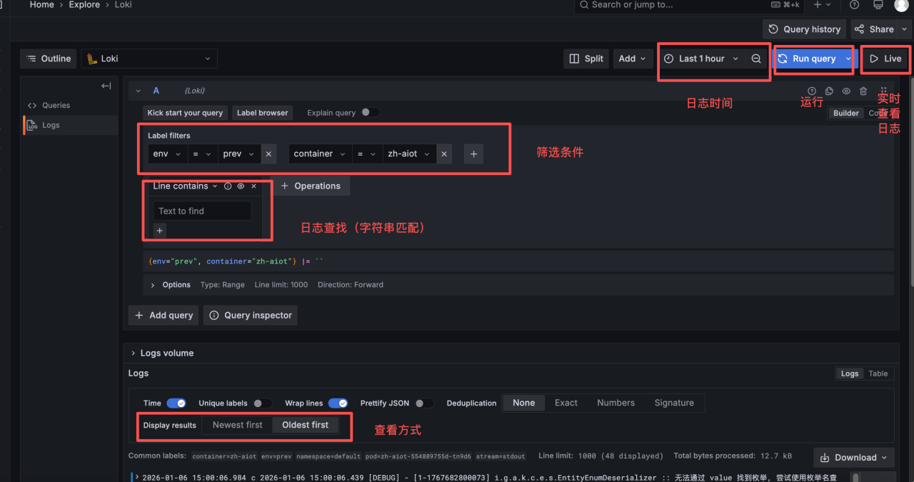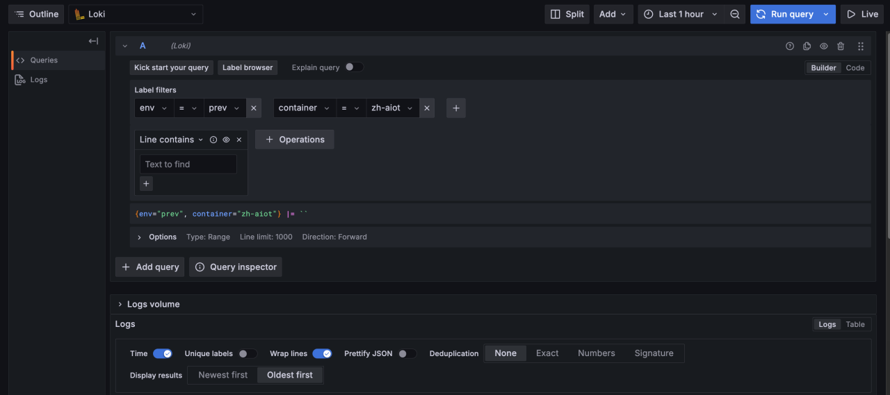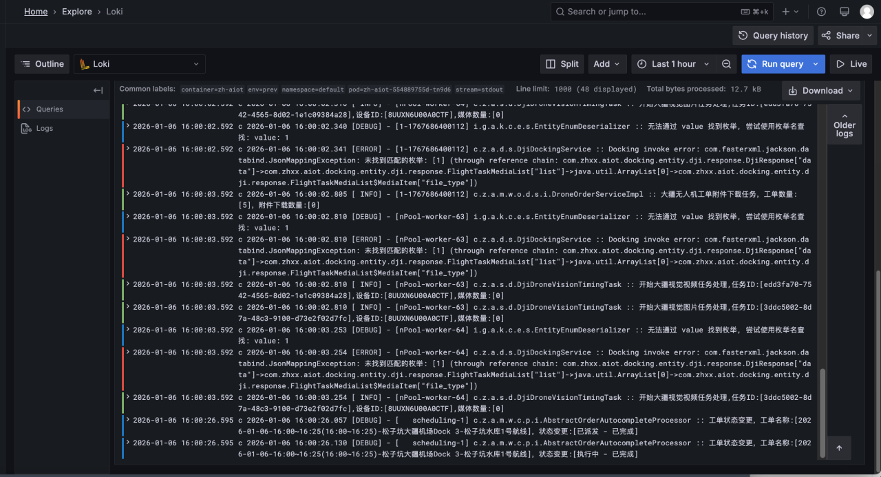 目前环境内查看日志只有两种方式:1.通过容器前台日志输出 2.通过 elk 来进行日志查看,第一种只能输出实时日志,当容器更新后日志会消失,第二种方式可以查看历史日志,但考虑到目前反馈 elk 并不好用,于是部署了一个新的 loki 服务来进行日志采集,并通过 grafana 来进行展示,目前测试预演已接入 loki 服务,开发人员先进行一段时间的使用,如果反馈比 elk 好用后续会应用到生产。