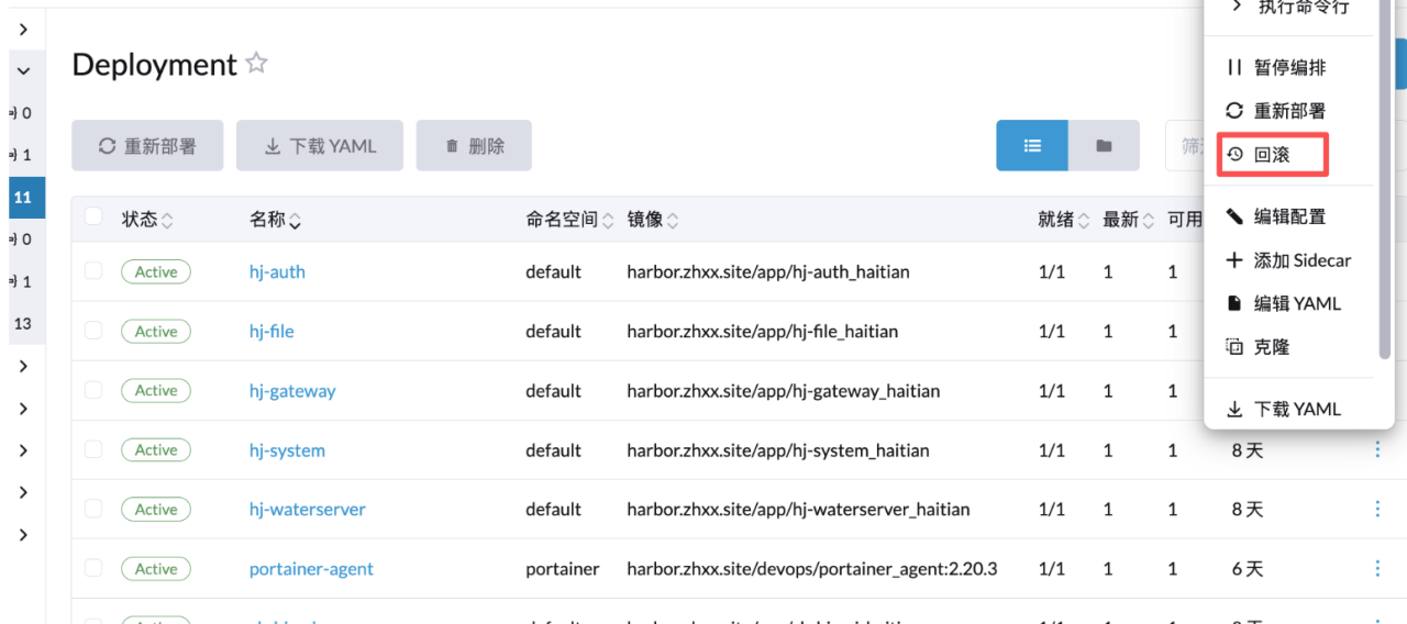 回滚基本上原理和更新一样,点击服务右边的三点,然后进入编辑,点击回滚