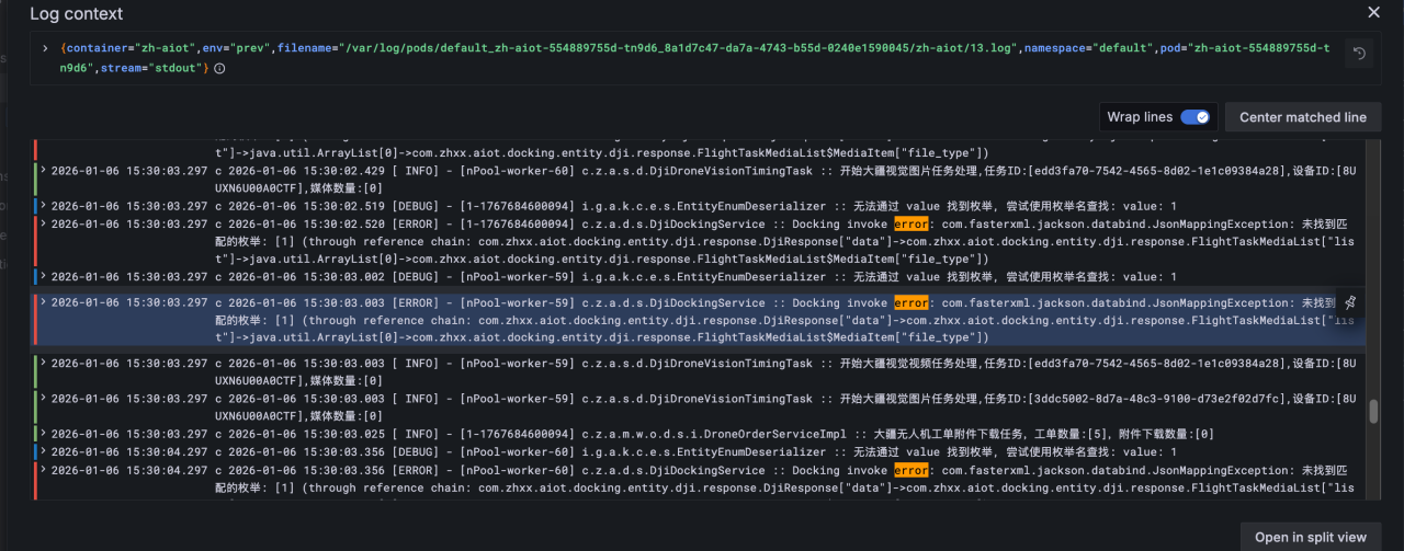 2.日志:主要是筛选日志,例如输入 error 则会筛选所有包含 error 的日志